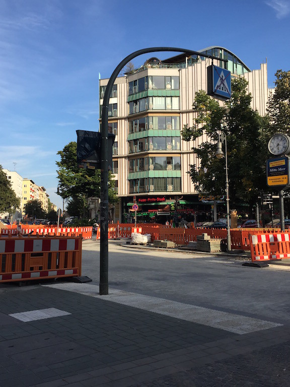 Im Zuge der Neugestaltung der Maaßenstraße wurde der Fußgängerüberweg nicht nur außer Kraft wie gesetzt, sondern schlichtweg abgeschafft. Fraglich ist, warum der nun bedeutungslos gewordene Bogenmast nicht entfernt wurde und um ihn herum gepflastert wurde. Vielleicht kann man ihn ja noch dafür benutzen, um für die Kinder eine Schaukel zu installieren